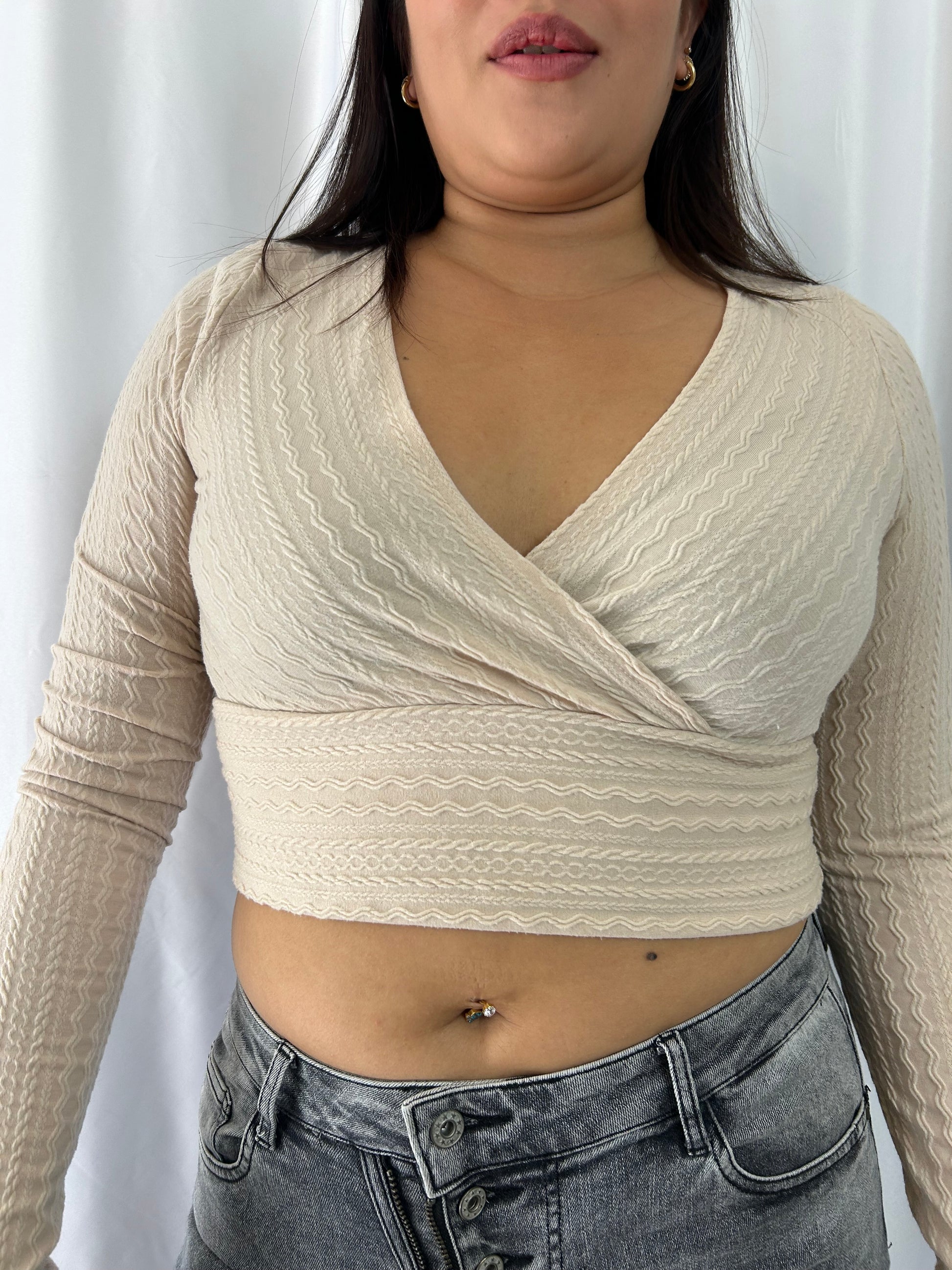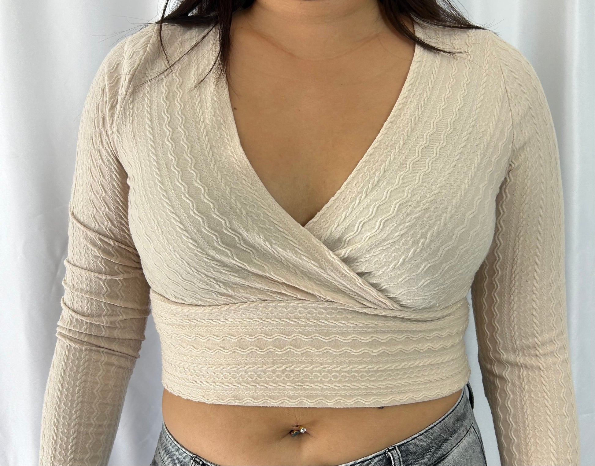 Détail : col décolleté, crop top